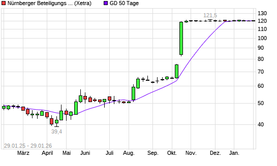 Mit dem Rücksetzer auf 119,50 EUR hat die Nürnberger Beteiligungs AG-Aktie am 28.01.2026 die 50-Tage-Linie nach unten gekreuzt.