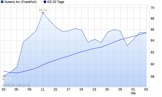 Mit dem Anstieg auf 65,46 EUR hat die Nutanix-Aktie am 02.10.2025 die 20-Tage-Linie nach oben gekreuzt.