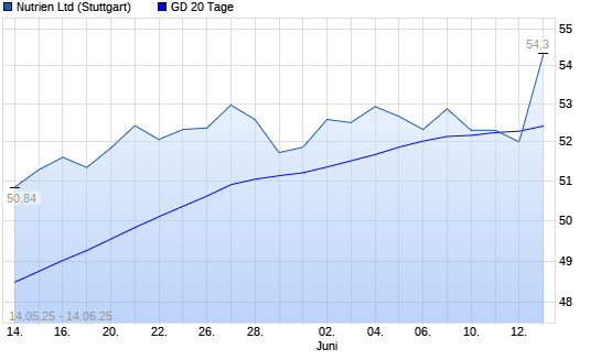 Mit dem Anstieg auf 54,30 EUR hat die Nutrien-Aktie am 13.06.2025 die 20-Tage-Linie nach oben gekreuzt.
