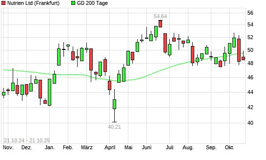 Mit dem Anstieg auf 49,60 EUR hat die Nutrien-Aktie am 20.10.2025 die 200-Tage-Linie nach oben gekreuzt.