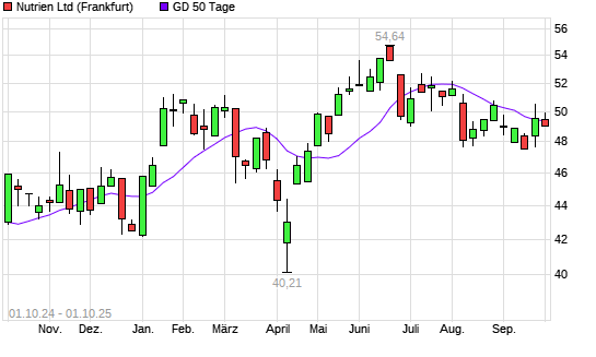 Mit dem Anstieg auf 49,26 EUR hat die Nutrien-Aktie am 30.09.2025 die 50-Tage-Linie nach oben gekreuzt.