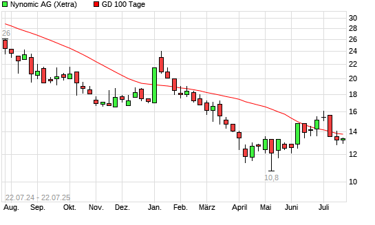 Mit dem Anstieg auf 13,60 EUR hat die Nynomic-Aktie am 21.07.2025 die 100-Tage-Linie nach oben gekreuzt.