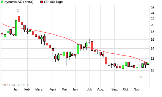 Mit dem Anstieg auf 11,35 EUR hat die Nynomic-Aktie am 27.11.2025 die 100-Tage-Linie nach oben gekreuzt.