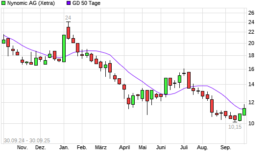 Mit dem Anstieg auf 11,80 EUR hat die Nynomic-Aktie am 29.09.2025 die 50-Tage-Linie nach oben gekreuzt.