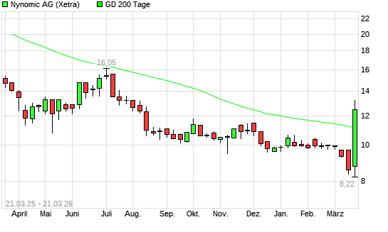 Mit dem Rücksetzer auf 10,40 EUR hat die Nynomic-Aktie am 20.03.2026 die 200-Tage-Linie nach unten gekreuzt.