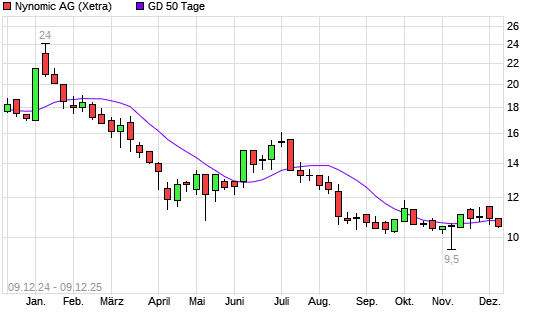 Mit dem Rücksetzer auf 10,45 EUR hat die Nynomic-Aktie am 08.12.2025 die 50-Tage-Linie nach unten gekreuzt.