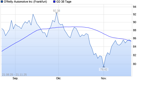 Mit dem Anstieg auf 85,68 EUR hat die O'Reilly Automotive-Aktie am 20.11.2025 die 38-Tage-Linie nach oben gekreuzt.