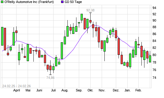 Mit dem Anstieg auf 80,70 EUR hat die O'Reilly Automotive-Aktie am 23.02.2026 die 50-Tage-Linie nach oben gekreuzt.
