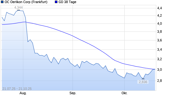 Mit dem Anstieg auf 3,01 EUR hat die OC Oerlikon-Aktie am 20.10.2025 die 38-Tage-Linie nach oben gekreuzt.