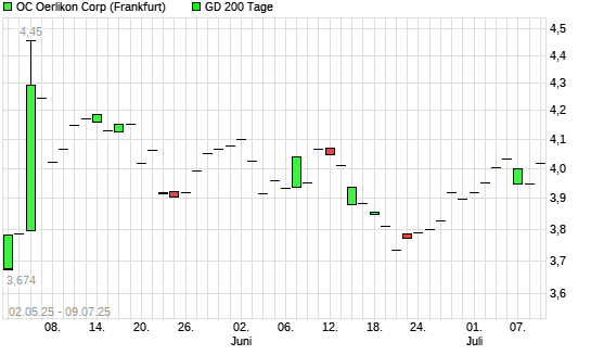 Mit dem Rücksetzer auf 3,95 EUR hat die OC Oerlikon-Aktie am 08.07.2025 die 200-Tage-Linie nach unten gekreuzt.