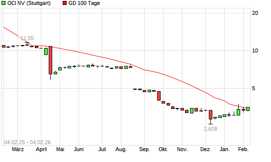 Mit dem Anstieg auf 3,50 EUR hat die OCI-Aktie am 03.02.2026 die 100-Tage-Linie nach oben gekreuzt.