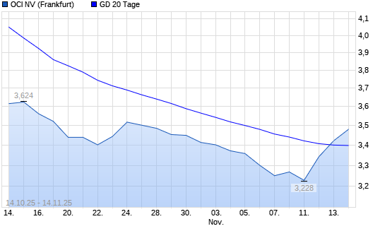 Mit dem Anstieg auf 3,42 EUR hat die OCI-Aktie am 13.11.2025 die 20-Tage-Linie nach oben gekreuzt.
