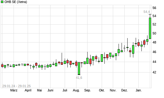 Mit dem Anstieg auf 51,00 EUR hat die OHB-Aktie (ISIN DE0005936124) am 28.01.2025 ein neues All-Time-High erreicht und damit den Kurs vom 27.01.2025 eingestellt.