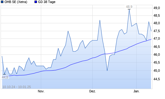 Mit dem Anstieg auf 48,00 EUR hat die OHB-Aktie am 09.01.2025 die 38-Tage-Linie nach oben gekreuzt.