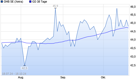 Mit dem Rücksetzer auf 44,40 EUR hat die OHB-Aktie am 17.10.2024 die 38-Tage-Linie nach unten gekreuzt.