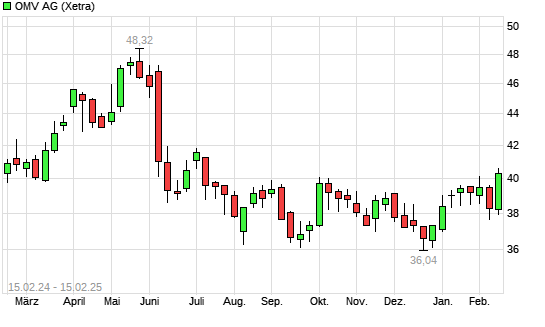 Mit dem Anstieg auf 40,20 EUR hat die OMV-Aktie (ISIN AT0000743059) am 14.02.2025 ein neues 6-Monats-Hoch erreicht und damit den Kurs vom 31.01.2025 eingestellt.