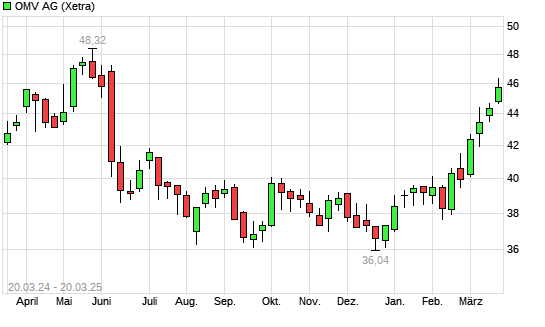 Mit dem Anstieg auf 45,78 EUR hat die OMV-Aktie (ISIN AT0000743059) am 19.03.2025 ein neues 6-Monats-Hoch erreicht und damit den Kurs vom 18.03.2025 eingestellt.