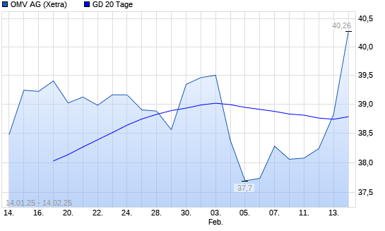 Mit dem Anstieg auf 39,06 EUR hat die OMV-Aktie am 13.02.2025 die 20-Tage-Linie nach oben gekreuzt.