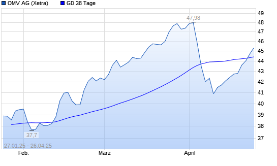 Mit dem Anstieg auf 45,20 EUR hat die OMV-Aktie am 25.04.2025 die 38-Tage-Linie nach oben gekreuzt.
