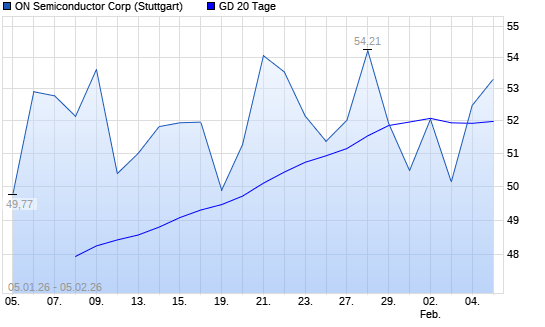 Mit dem Anstieg auf 52,67 EUR hat die ON Semiconductor-Aktie am 04.02.2026 die 20-Tage-Linie nach oben gekreuzt.