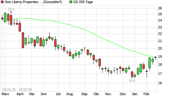 Mit dem Anstieg auf 19,24 EUR hat die ONE LIBERTY PROPERTIES-Aktie am 17.02.2026 die 200-Tage-Linie nach oben gekreuzt.