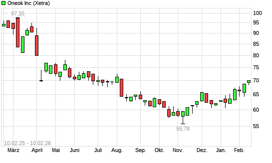 Mit dem Anstieg auf 68,87 EUR hat die ONEOK-Aktie (ISIN US6826801036) am 09.02.2026 ein neues 6-Monats-Hoch erreicht und damit den Kurs vom 05.02.2026 eingestellt.