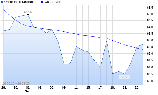 Mit dem Anstieg auf 62,53 EUR hat die ONEOK-Aktie am 25.09.2025 die 20-Tage-Linie nach oben gekreuzt.