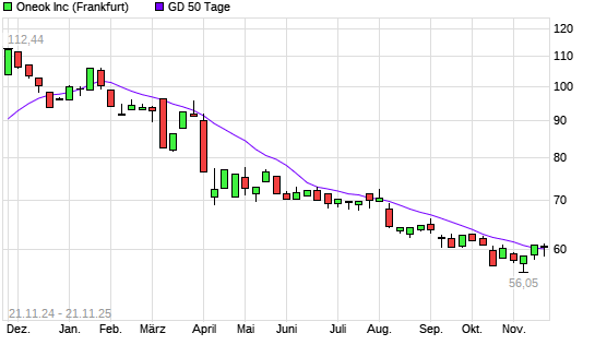 Mit dem Anstieg auf 60,65 EUR hat die ONEOK-Aktie am 20.11.2025 die 50-Tage-Linie nach oben gekreuzt.