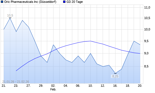 Mit dem Anstieg auf 9,25 EUR hat die ORIC PHARMAC.-Aktie am 20.02.2026 die 20-Tage-Linie nach oben gekreuzt.