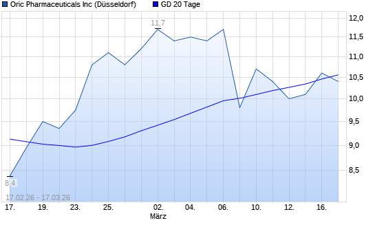 Mit dem Anstieg auf 10,50 EUR hat die ORIC PHARMAC.-Aktie am 16.03.2026 die 20-Tage-Linie nach oben gekreuzt.