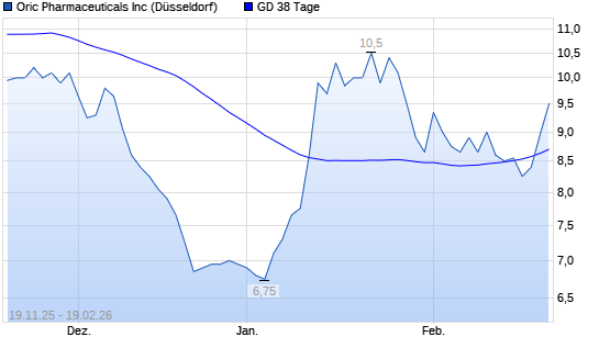 Mit dem Anstieg auf 8,70 EUR hat die ORIC PHARMAC.-Aktie am 18.02.2026 die 38-Tage-Linie nach oben gekreuzt.