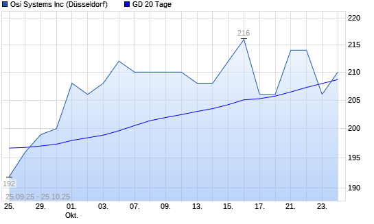 Mit dem Anstieg auf 212,00 EUR hat die OSI SYSTEMS-Aktie am 24.10.2025 die 20-Tage-Linie nach oben gekreuzt.