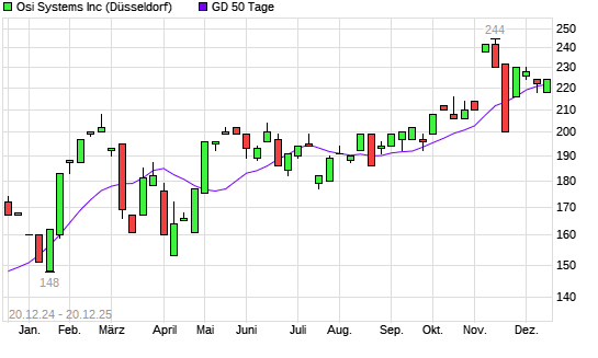 Mit dem Anstieg auf 224,00 EUR hat die OSI SYSTEMS-Aktie am 19.12.2025 die 50-Tage-Linie nach oben gekreuzt.