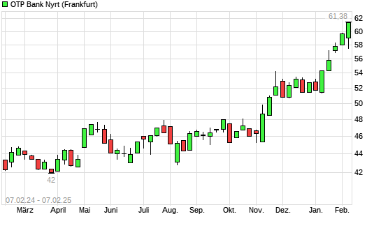 Mit dem Anstieg auf 61,00 EUR hat die OTP Bank-Aktie (ISIN HU0000061726) am 06.02.2025 ein neues All-Time-High erreicht und damit den Kurs vom 31.01.2025 eingestellt.