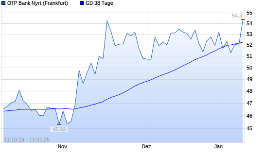 Mit dem Anstieg auf 54,30 EUR hat die OTP Bank-Aktie am 10.01.2025 die 38-Tage-Linie nach oben gekreuzt.