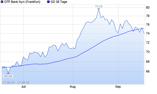 Mit dem Anstieg auf 75,32 EUR hat die OTP Bank-Aktie am 16.09.2025 die 38-Tage-Linie nach oben gekreuzt.