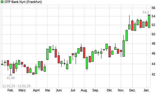 Mit dem Anstieg auf 54,30 EUR hat die OTP Bank-Aktie (ISIN HU0000061726) am 10.01.2025 ein neues 3-Jahres-Hoch erreicht und damit den Kurs vom 18.11.2024 eingestellt.Die OTP Bank-Aktie befindet ...weiterlesen