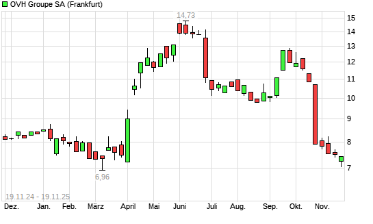 Mit dem Rücksetzer auf 7,05 EUR hat die OVH Groupe-Aktie (ISIN FR0014005HJ9) am 18.11.2025 ein neues 6-Monats-Tief erreicht und damit den Kurs vom 17.11.2025 eingestellt.