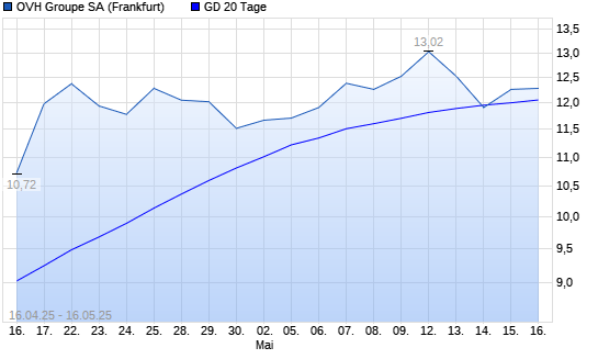 Mit dem Anstieg auf 12,26 EUR hat die OVH Groupe-Aktie am 15.05.2025 die 20-Tage-Linie nach oben gekreuzt.