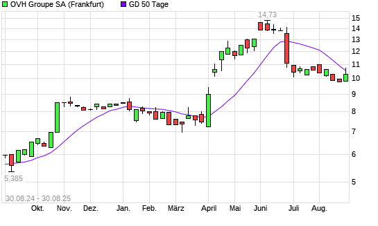 Mit dem Rücksetzer auf 10,28 EUR hat die OVH Groupe-Aktie am 29.08.2025 die 50-Tage-Linie nach unten gekreuzt.