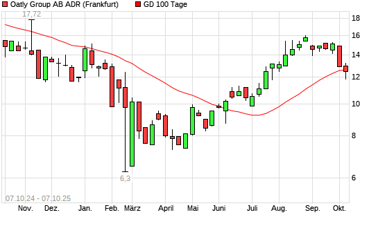 Mit dem Rücksetzer auf 12,30 EUR hat die Oatly-Aktie am 06.10.2025 die 100-Tage-Linie nach unten gekreuzt.