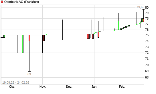 Mit dem Anstieg auf 78,00 EUR hat die Oberbank-Aktie (ISIN AT0000625108) am 23.02.2026 ein neues 12-Monats-Hoch erreicht und damit den Kurs vom 28.01.2026 eingestellt.Die ...weiterlesen