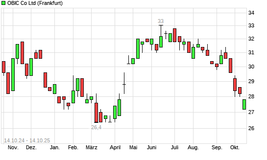 Mit dem Rücksetzer auf 27,20 EUR hat die Obic-Aktie (ISIN JP3173400007) am 13.10.2025 ein neues 6-Monats-Tief erreicht und damit den Kurs vom 02.10.2025 eingestellt.