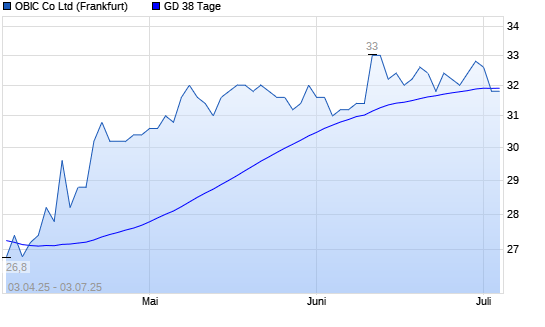 Mit dem Rücksetzer auf 31,80 EUR hat die Obic-Aktie am 02.07.2025 die 38-Tage-Linie nach unten gekreuzt.