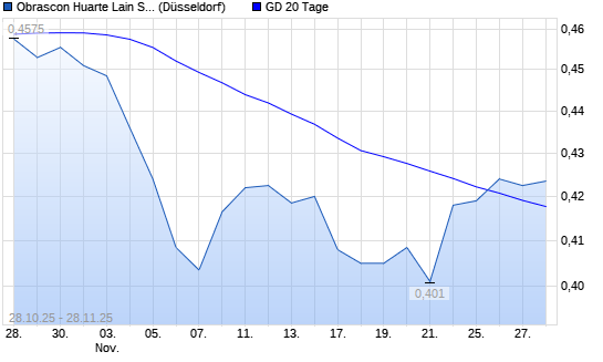 Mit dem Anstieg auf 0,42 EUR hat die Obrascon Huarte Lain-Aktie am 27.11.2025 die 20-Tage-Linie nach oben gekreuzt.