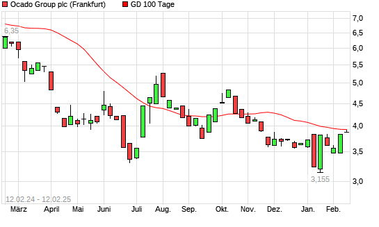 Mit dem Anstieg auf 3,92 EUR hat die Ocado Group-Aktie am 11.02.2025 die 100-Tage-Linie nach oben gekreuzt.