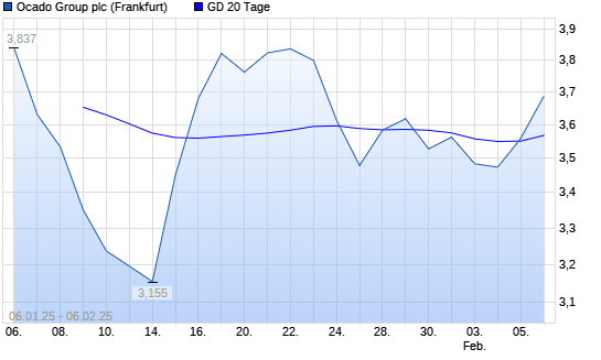 Mit dem Anstieg auf 3,56 EUR hat die Ocado Group-Aktie am 05.02.2025 die 20-Tage-Linie nach oben gekreuzt.
