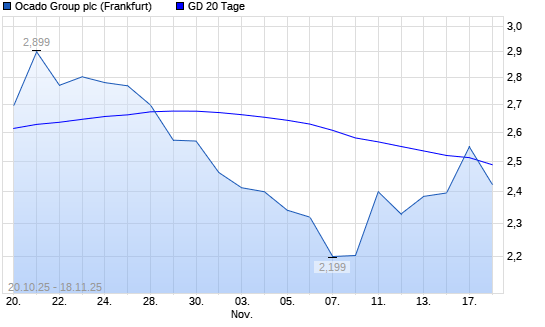 Mit dem Anstieg auf 2,55 EUR hat die Ocado Group-Aktie am 17.11.2025 die 20-Tage-Linie nach oben gekreuzt.