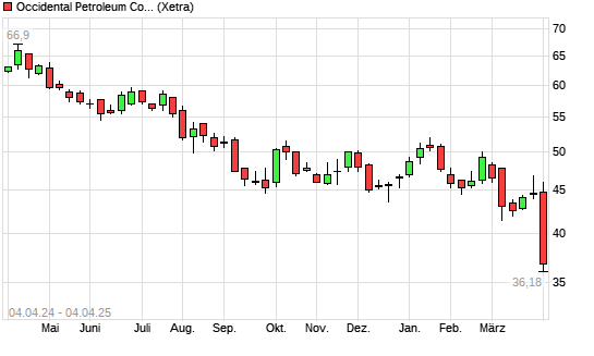 Mit dem Rücksetzer auf 39,86 EUR hat die Occidental Petroleum-Aktie (ISIN US6745991058) am 03.04.2025 ein neues 3-Jahres-Tief erreicht und damit den Kurs vom 06.03.2025 eingestellt.