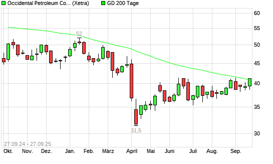 Mit dem Anstieg auf 41,26 EUR hat die Occidental Petroleum-Aktie am 26.09.2025 die 200-Tage-Linie nach oben gekreuzt.